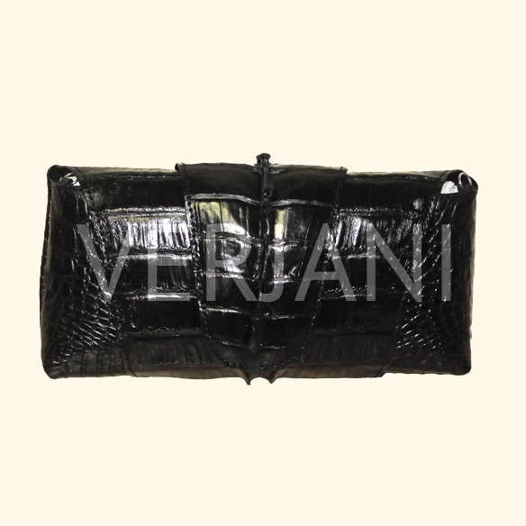 Стильный, оригинальный клатч выполнен и цельный шкуры хвоста крокодила